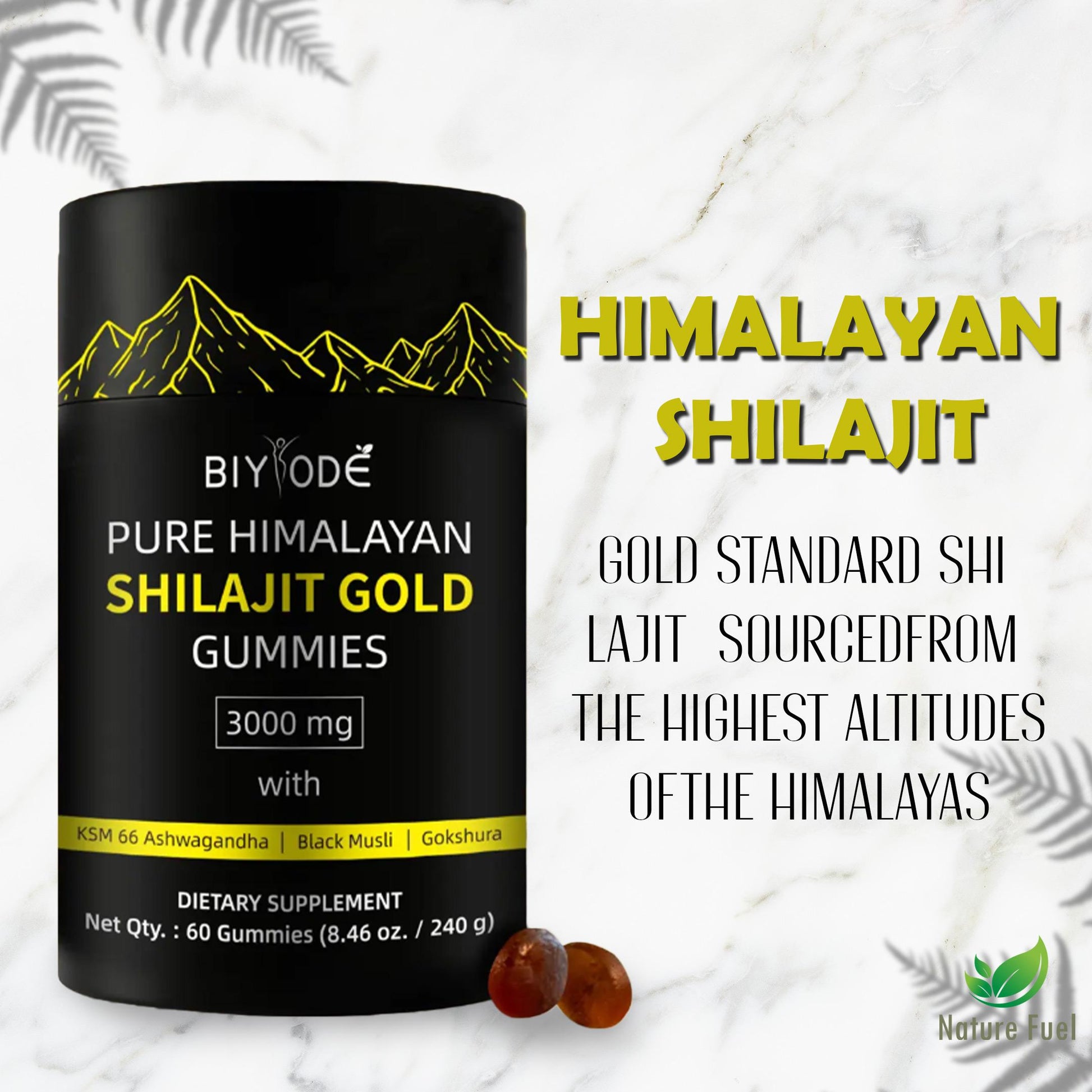Pure Himalayan Power: Harvested from 18,000 feet in the Himalayan Mountains, our Gold Grade Shilajit Gummies are pure and unadulterated. Designed to boost energy, improve recovery, and support your active lifestyle.