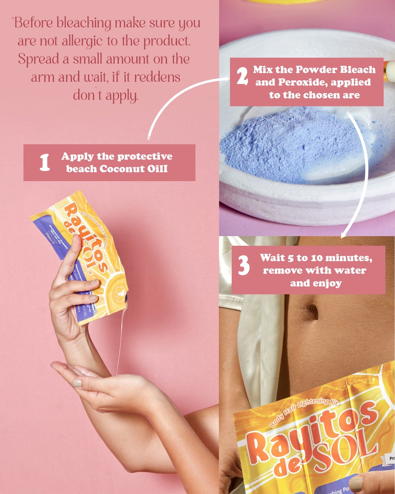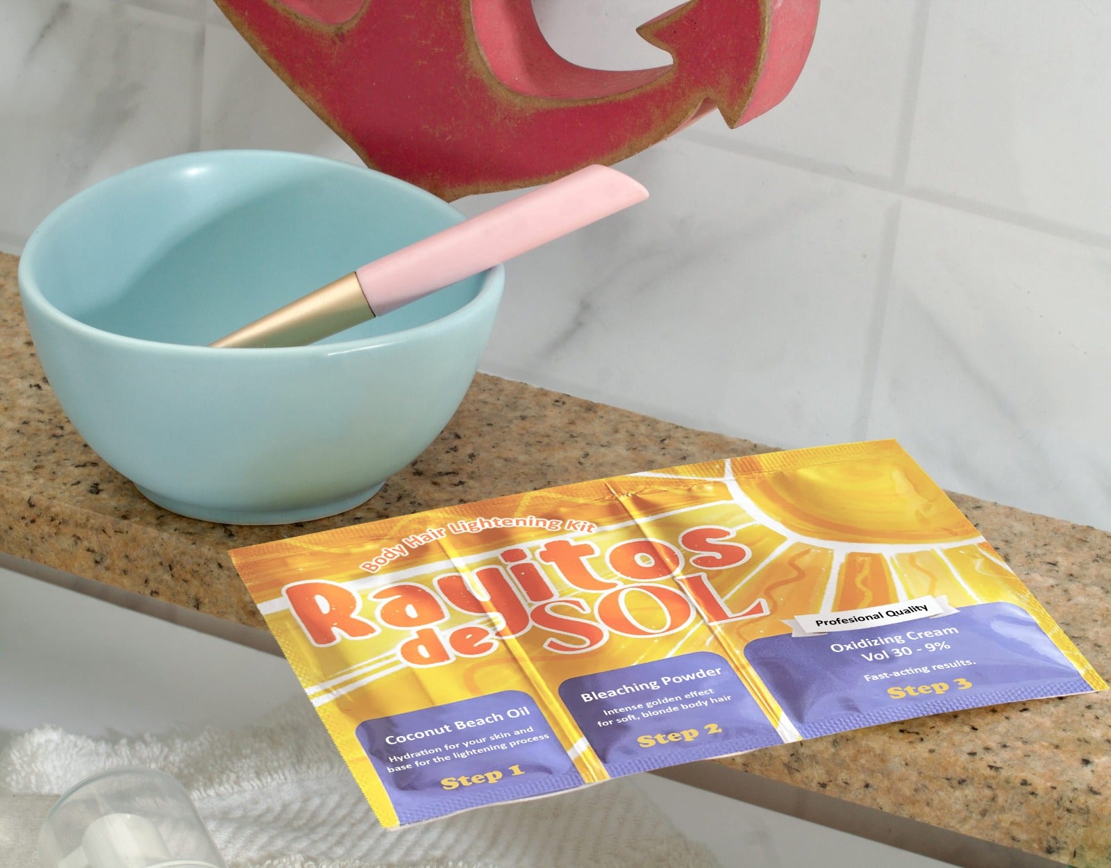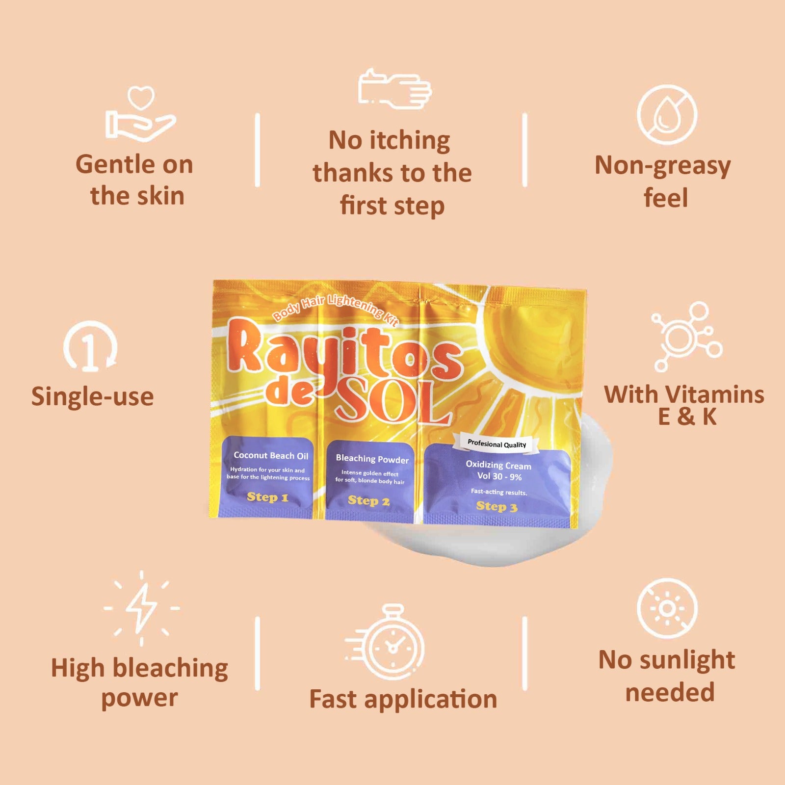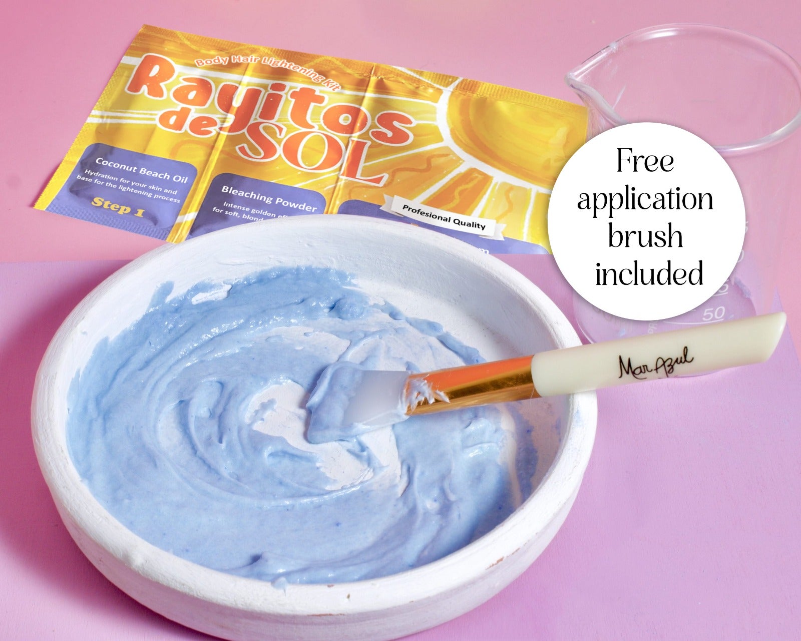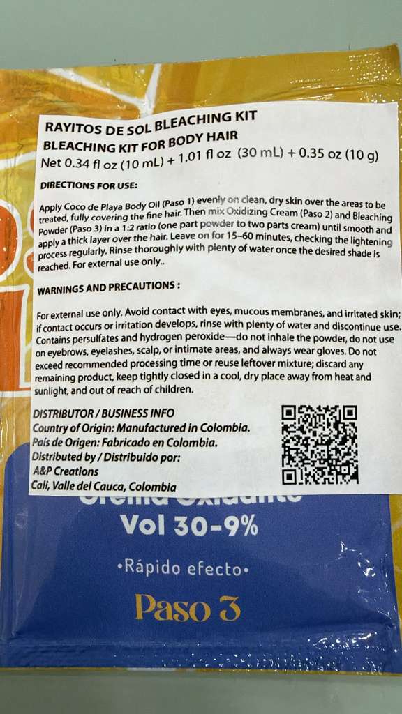 Rayitos de Sol Body Hair Lightening Kit – Gentle Bleaching System with Coconut Oil, Bleaching Powder, Oxidizing Cream & Brush | Fast, Safe & Skin-Friendly Results